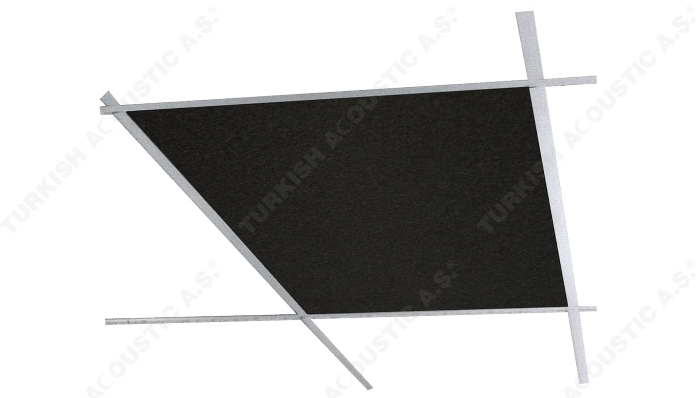 Acoustic Ceiling Panels: Acoustic ceiling panels are produced as sheets stuffed with an acoustic sponge or rock wool with a T carrier system in 60 x 60 dimensions. It is possible to produce in different colors as a suspended ceiling system. Acoustic ceiling tiles will be a solution partner for your projects like construction acoustics. Frontside of the panel is covered with sound-absorbent fabric applied with a stretch method or optional fireproof laminated fabric finish. As seen in the image on the left, panels are durable against impacts with reinforced wood. Our products are resistant to impacts and will not be punctured unless abraded by point and sharp materials. The front and backside of the acoustic fabric panels are covered with fiberglass. The visible front side of the panel is reinforced and high-density material and covered with acoustic fabric that is resistant to impacts and heat and has different color options. Our acoustic fabric-covered panels (covered with fireproof fabric) are beveled up to 3-5cm to the backside. The main material of the panels is acoustic rock wool in 95kg/m3 density. Acoustic fabric-covered panels are generally in standard sizes and thicknesses. Panel thickness: 20mm-40mm. Edge detail: Straight and reinforced. It is possible to produce in different sizes and colors (Project-based). NRC acoustic value (sound absorption value): between 0.95-1.00. Fire endurance of the acoustic fabric-covered panels is B s2 d0 class according to UNE – EN 13501-1:2007 standard. İstanbul sales office of the acoustic panels is Turkish Acoustic.