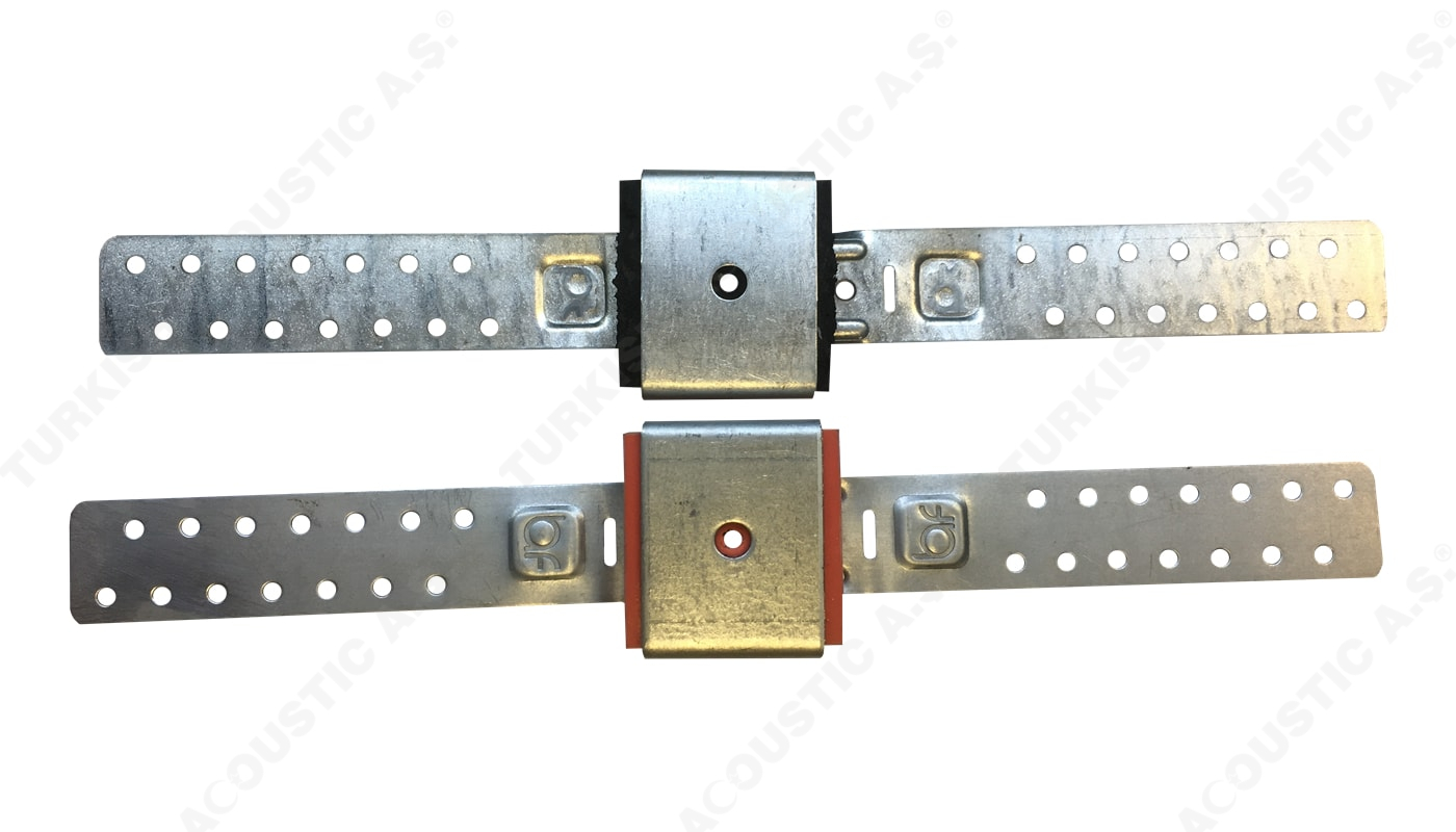 TURCO IZODT – 02 series products are wall / ceiling carrier elements with special elastomer insulators that are compatible with all structural elements and provide noise and vibration control. It provides vibration isolation at different frequency and load ranges between the carrier construction and the floor in insulated ceiling manufacturing and mechanical suspension systems. It can be used in mechanical rooms, industrial facilities, sports centers, conference, cinema, theater halls, offices and residences.