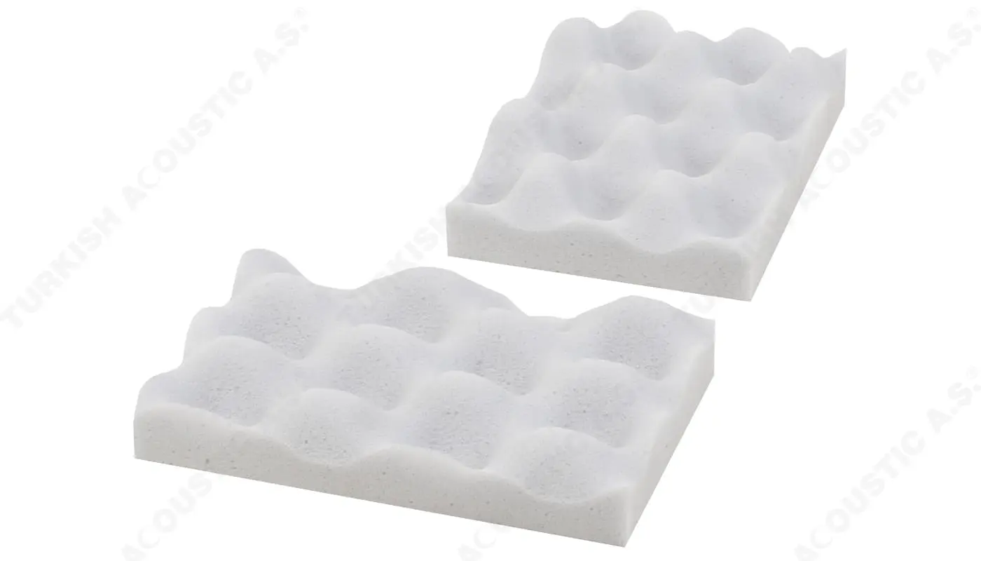 Basotect Egg Sponge: Basf basotect egg sponges (basf acoustic foams) are produced from 1250 mm x 2500 mm sponge slabs that we imported from Germany in desired dimensions and thicknesses. Basotect melamine egg sponges have high technology products and have low and high sound absorption properties. It is possible to produce melamine sponges in different shapes. Turkish Acoustic, which produces panels in any thickness and pattern, supplies sound insulation products to the leading companies in Turkey, such as THY and Karsan. Basotect melamine sponge, which Basf develops for Nasa shuttles and is a high technology and R&D study product, is an acoustic sound insulation material with high performance. Our product dimensions are 500 mm x 1250 mm. Thickness: 0,5 mm - 100 mm.