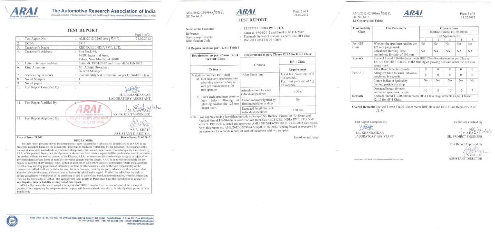 Recfoam Rebonded Panel Nonflammability: Do not have nonflammability properties.