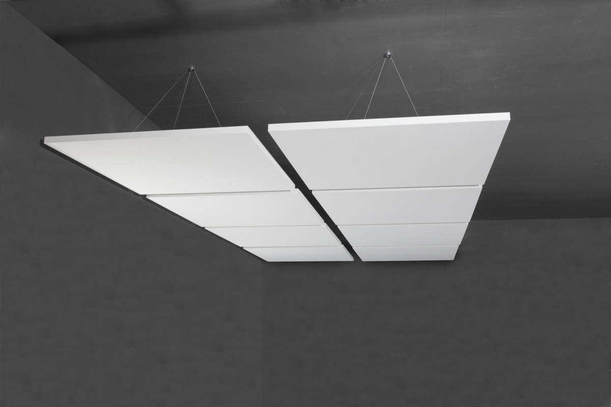 Altıgen Petek Kanopi Paneller : Baffle tavan sistemleri kaplamalı yada düz basotect sünger panelden üretilir. Kanopi akustik paneller, çelik paslanmaz aksesuar olan kablo ve ankaraj malzemeleri ile tavanlara asılarak monte edilir. ( Canopy Acoustic Ceiling ). Kanopi akustik tavan sistemleri NRC akustik değeri ( ses emilim yutum değeri ) 0.95-1.00 aralığındadır. Baffle akustik kumaş kaplı pano panelleri yangın dayanımı, UNE – EN 13501-1:2007 standardına göre B s2 d0 sınıfıdır .Ürün starndart 30 mm 40 mm ve 50 mm kalınlıkta üretilir.